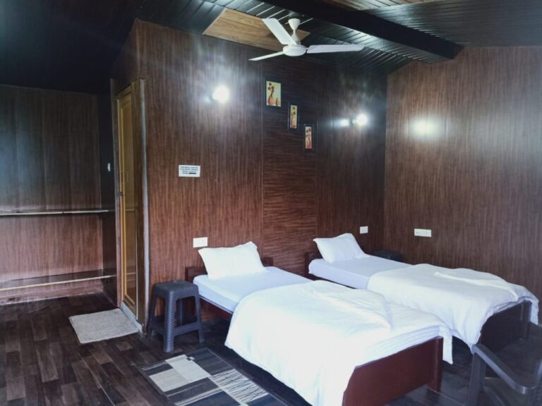 This WOODEN cottage is tastefully furnished with a double or twin bed and offers views of the Himalayas from the windows. A few of the rooms face the beautiful picturesque forest.